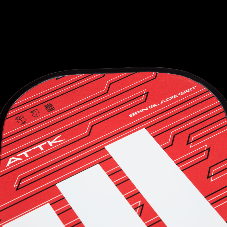 The RX ATTK 3 is a racket with the ideal design and materials to elevate your game to the next level. From its core made of High Density Polypropylene Honeycomb emerge powerful shots, amplified by the momentum generated from its high sweet spot. To complement this decisive racket, the Spin Blade Grit offers top-level spin effects. Meanwhile, the fibreglass on the surface and the standard-sized Comfort Grip enhance handling and control. As a result, we have a racket that strikes a balance between power and ease of manoeuvrability.